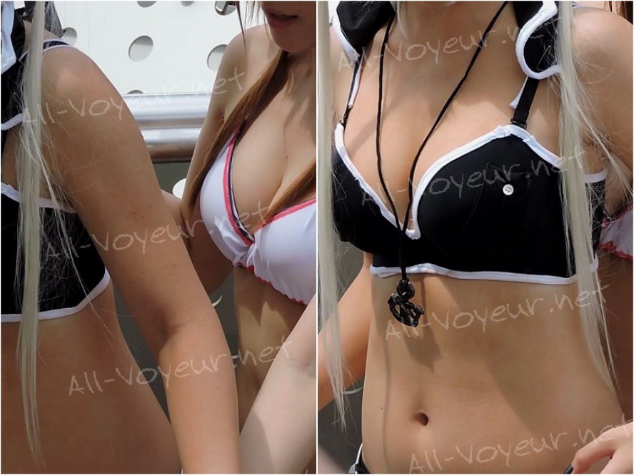 白と黒の2人組、谷間おっぱいに興奮!